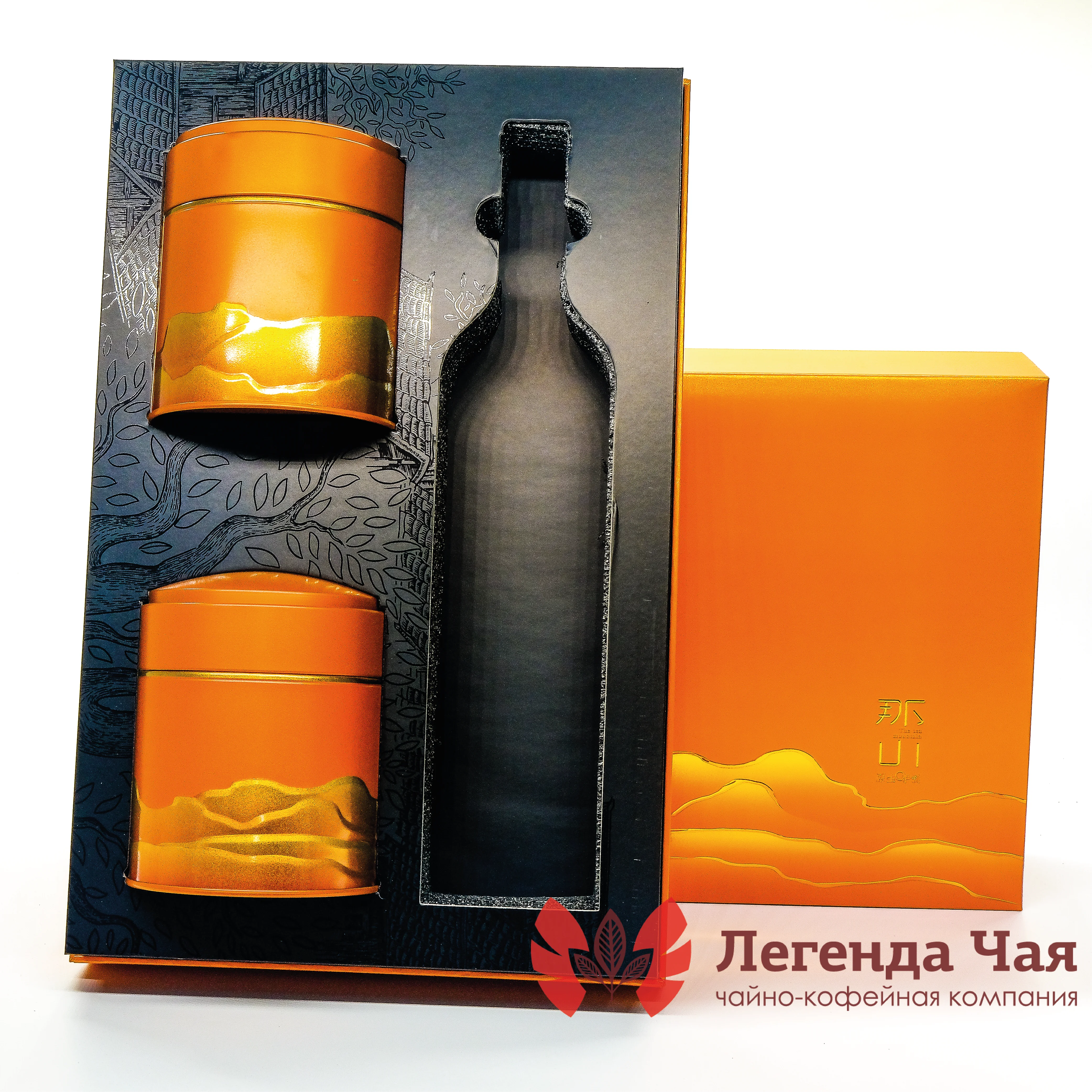 Подарочная коробка Закат Оранжевый 2 банки Жесть + Подарочный пакет Легенда чая купить оптом и в розницу | «Легенда Чая»