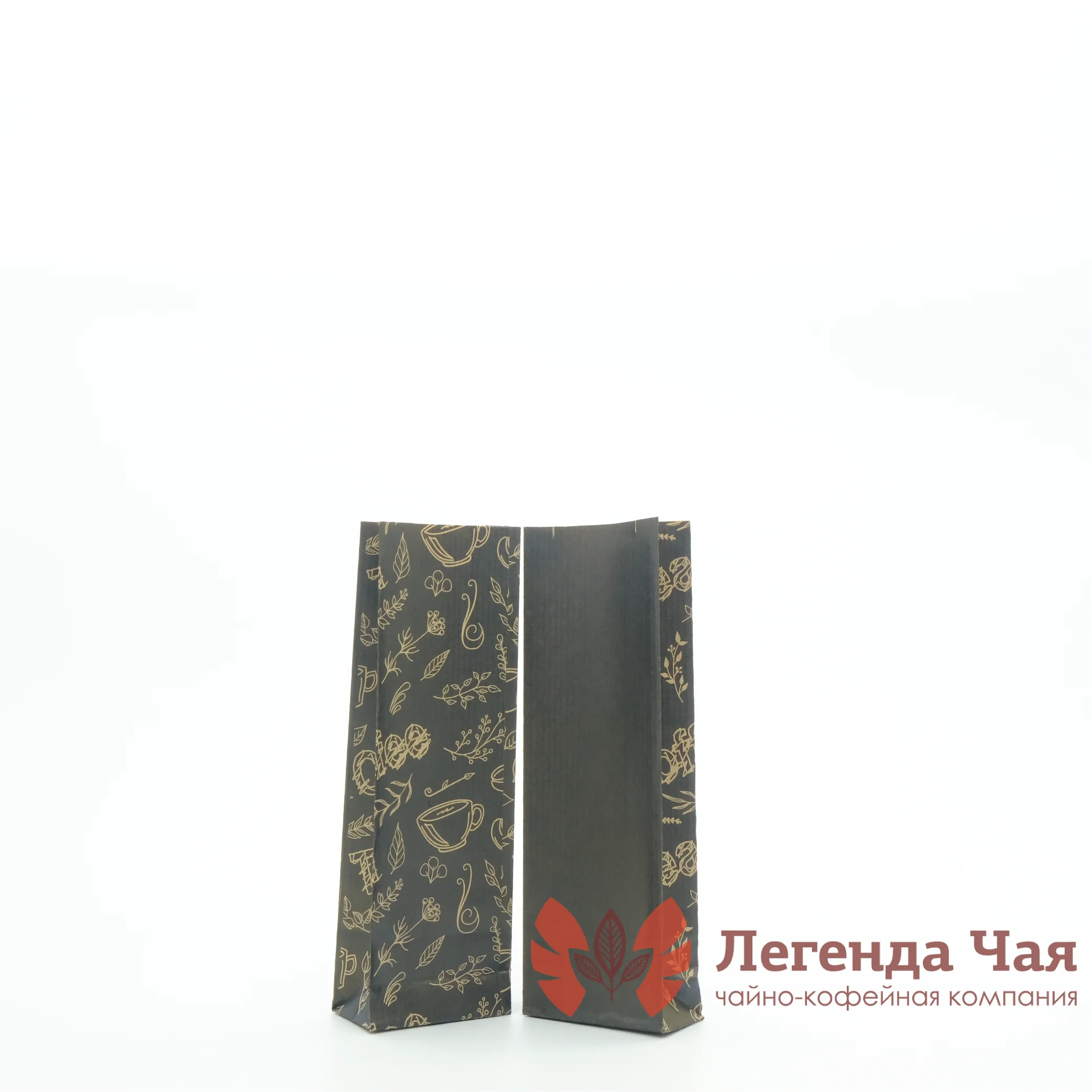 Пакет 3-х слойный 50 гр. Кофе и чай Черный с рисунком Без окна купить оптом и в розницу | «Легенда Чая»