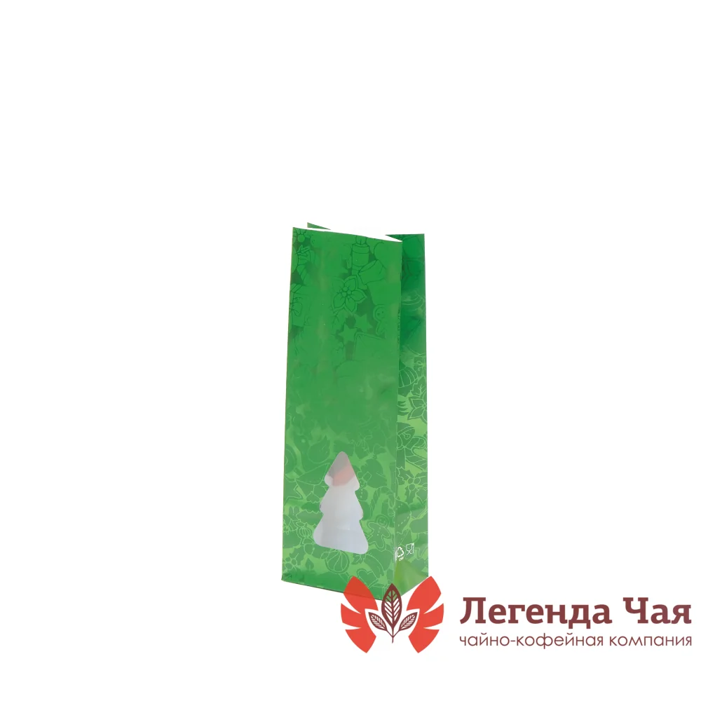 Пакет 4-х слойный 100 гр. Елка Зеленый С окном купить оптом и в розницу | «Легенда Чая»