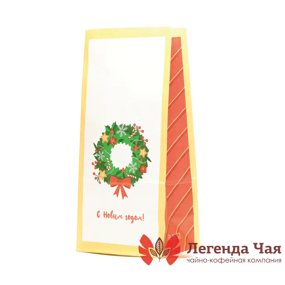 Пакет крафт 400 гр. Венок С Новым Годом Белый с рисунком Без окна купить оптом и в розницу | «Легенда Чая»
