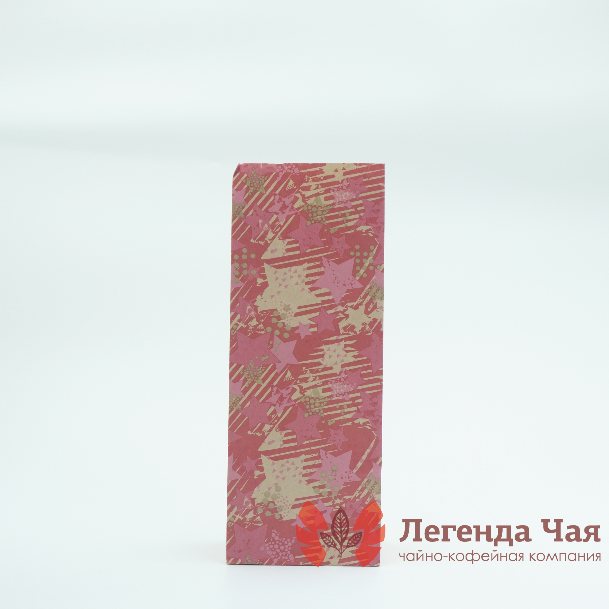 Пакет крафт 250 гр. Звезды Красный с рисунком Без окна купить оптом и в розницу | «Легенда Чая»