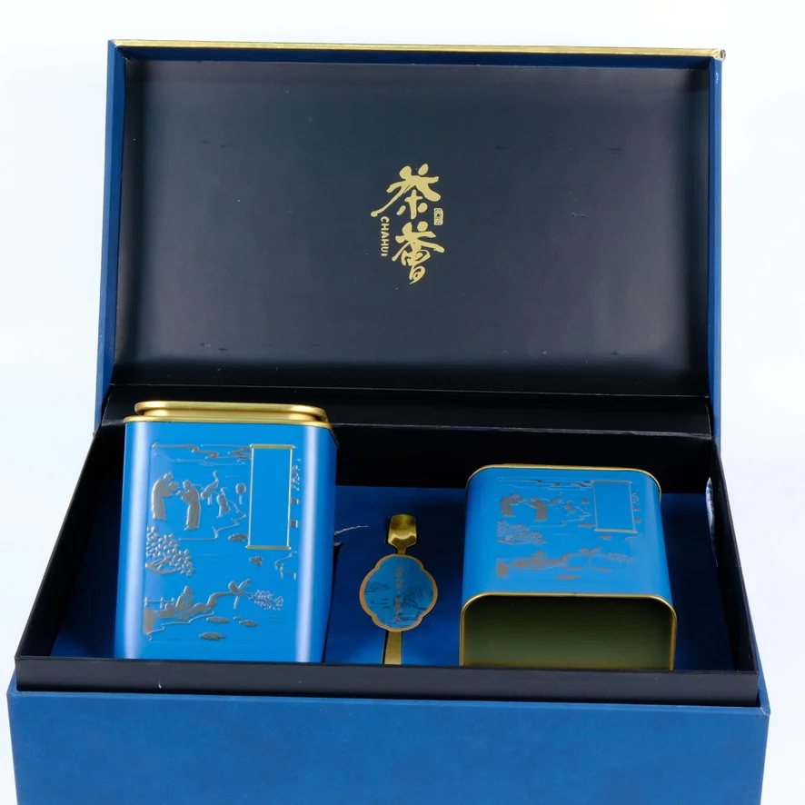 Подарочная коробка №6 Большой Синий 2 банки + ложка Металл + Подарочный пакет Легенда чая купить оптом и в розницу | «Легенда Чая»