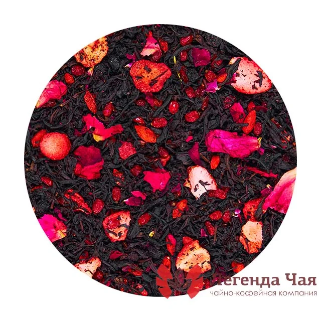 Индийский черный чай, Кенийский черный чай, барбарис красный, вишня сушеная, лепестки розы, мелкие лепестки розы, слайсы клубники, ягоды годжиСпособ заваривания: