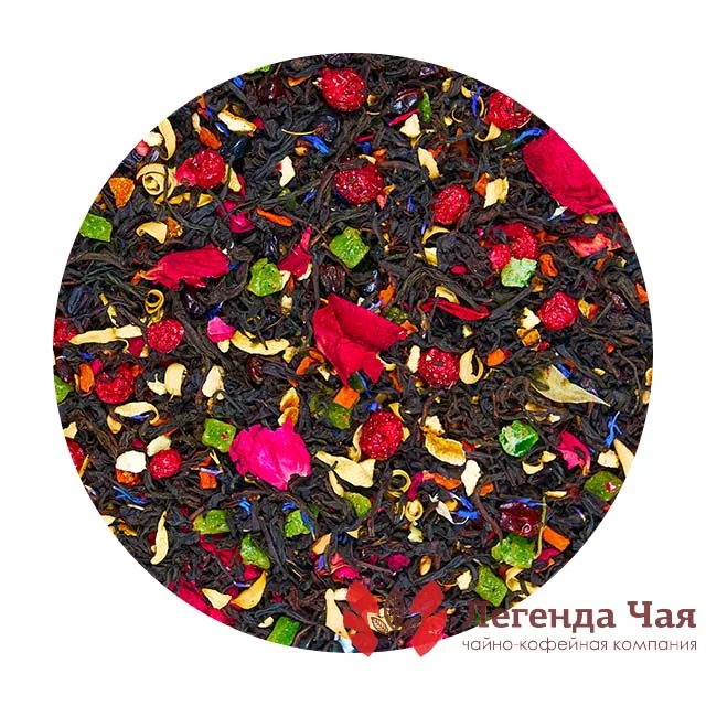 Индийский черный чай, Кенийский черный чай, ананас, вишня сушеная, корка апельсина, косточка шиповника, лепестки василька, лепестки розы, можжевельник, морковь цукаты, смородина красная, цветок апельсинового дереваСпособ заваривания: