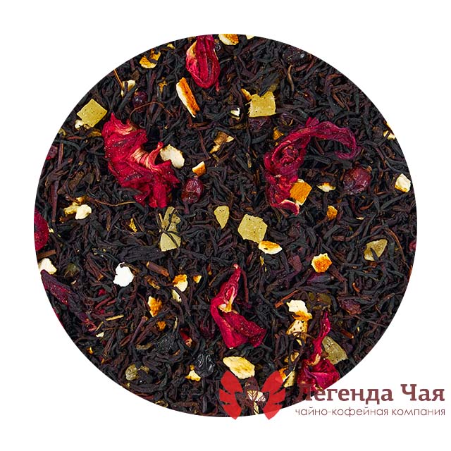 Кенийский черный чай, вишня сушеная, каркаде, корка апельсина, цукаты ананаса светлыеСпособ заваривания: