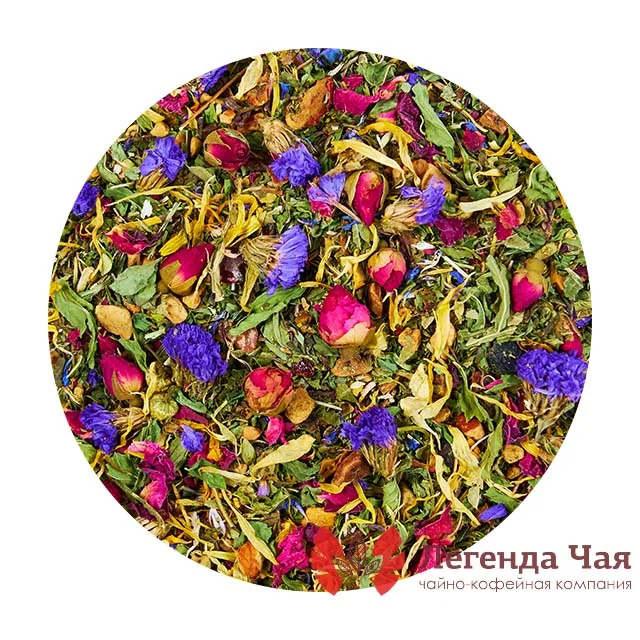 бутон розовой розы, бутон розовой розы, вишня сушеная, кожура шиповника, косточка шиповника, лемонграсс, мальва, мелкие лепестки розы, мята, мята, мята перечная, незабудка, ромашка, цветок календулы, чабрец, чабрец мелкий, яблоко резанное