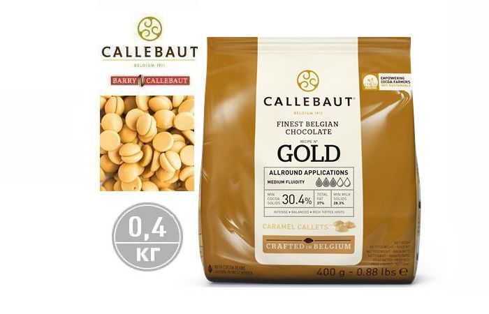 Шоколад в каллетах Белый шоколад Голд с карамелью Какао 30,4% - 400 гр. Каллебаут (Callebaut)