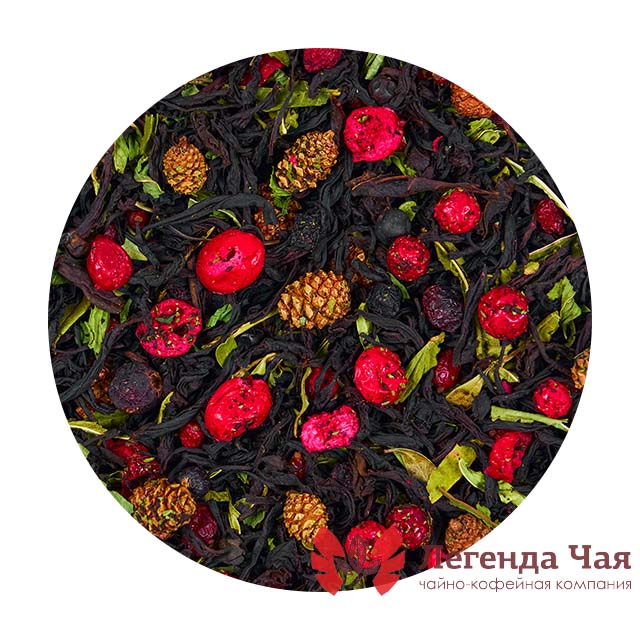 Иван чай, Кенийский черный чай, Кенийский черный чай, барбарис красный, вишня сушеная, листья мяты, листья толокнянки, можжевельник, слайсы клюквы, смородина красная, сосновая шишкаСпособ заваривания: