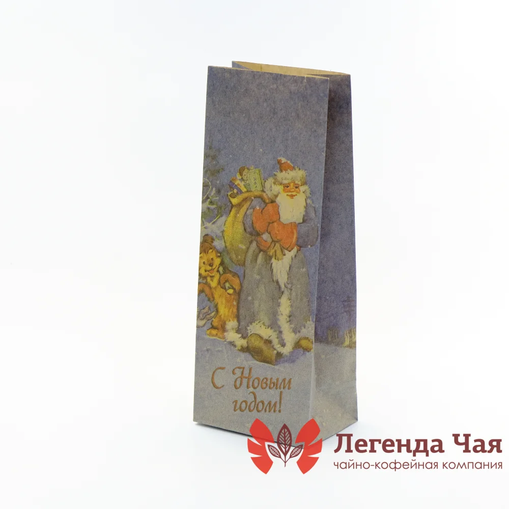 Пакет крафт 200 гр. Ретро С Новым Годом! 00018510 Синий с рисунком Без окна купить оптом и в розницу | «Легенда Чая»