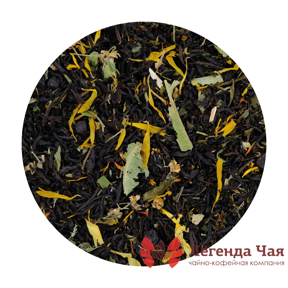 Индийский черный чай, Цейлонский зеленый чай, вишня сушеная, лепестки сафлора, мята перечная, ромашка, цветки липы, цветок календулы, чабрец, шиповникСпособ заваривания:
